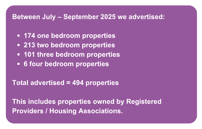 Due to the current demand for social housing and the lack of available properties it is not possible to offer all households on the housing register a property. We advise applicants to be realistic with the length of time you may wait for an offer of property and encourage you to explore other options that are available to you.